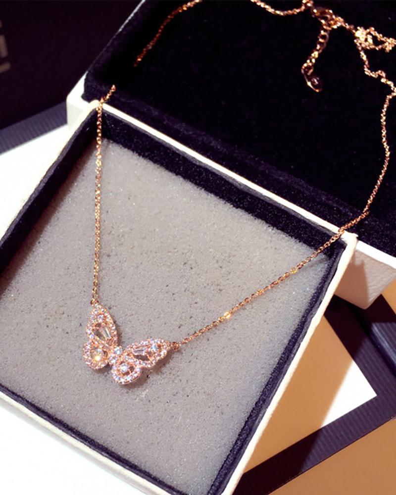 Butterfly Pendant Rhinestone Decor Necklace, Gold