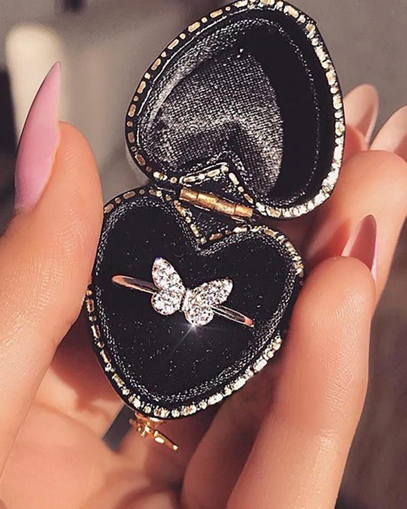 Butterfly Rhinestone Pattern Ring, Silver