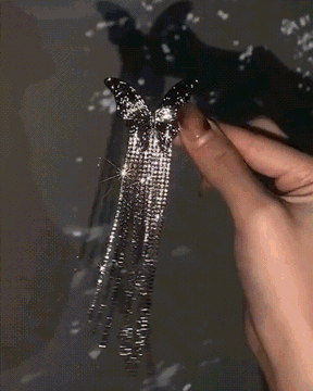 Butterfly Rhinestone Tassel Design Hair Clip, Silver