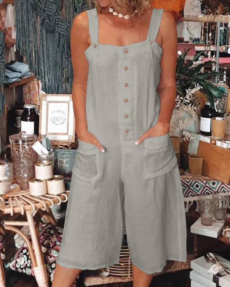 Button Front Pocket Design Suspender Romper, Light gray