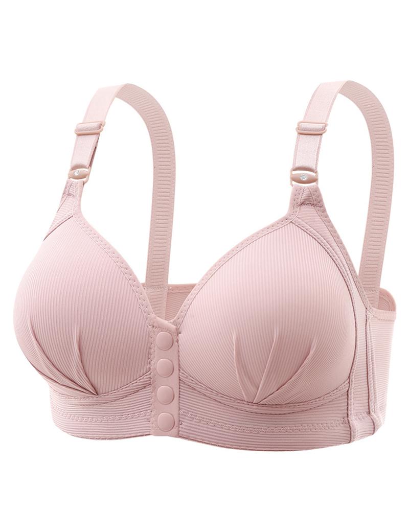 Button Front Ruched Push Up Wireless Lifting Bra, Red bean