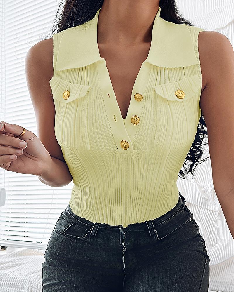 Buttoned Pocket Design Knit Tank Sweater, Yellow