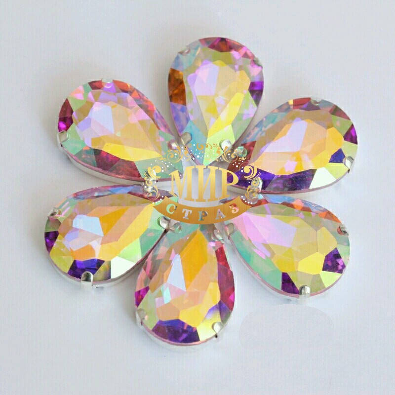 Cтразы в цапах, Капля, Размер 13x18, Цвет Crystal AB