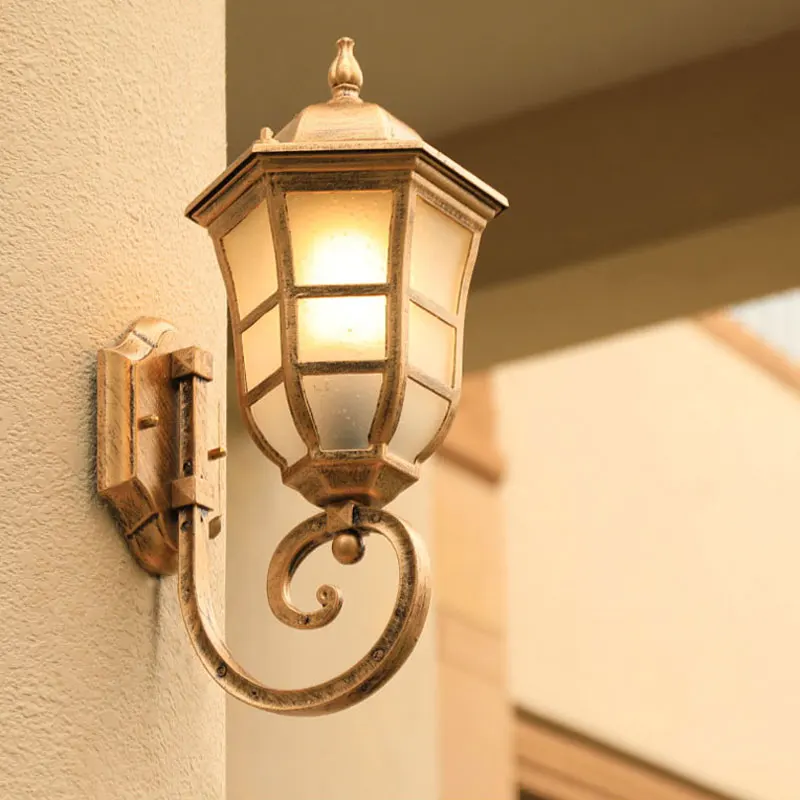 Европа, наружная настенная лампа, ретро, сад, двор, крыльцо, жилой балкон, наружное водонепроницаемое освещение, лампочка E27, стеклянные светильники