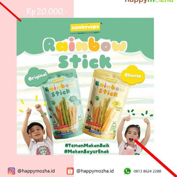Rainbow Stick Sunkrisps aman untuk di konsumsi si kecil karena menggunakan bahan-bahan alami natural dan cocok untuk jadi cemilan si kecil. Serta, tanpa menggunakan MSG dan Pengawet!
