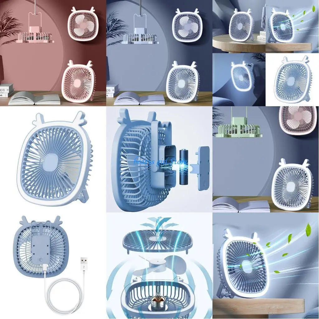 C7AB Outdoor Desk Fan Desktop Table Fan USB Desk Fan Table Cooling Fan with LED