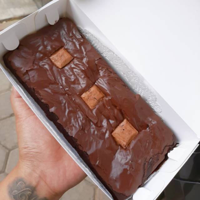 Brownies dengan topping dan potongan coklat Cadbury di dalamnya. Hanya menggunakan baham berkualitas dan tanpa bahan pengawet. Aman untuk anak-anak