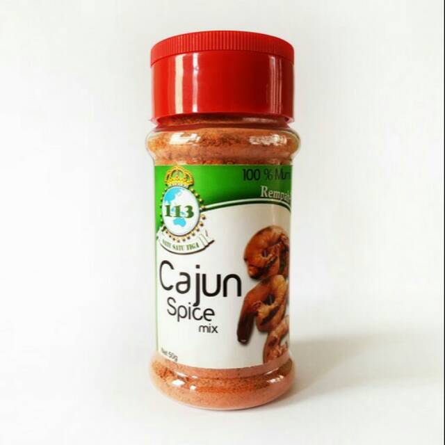 Cajun seasoning merek 113 cocok untuk dipakai pada ayam bakar, udang, kerang, dll.