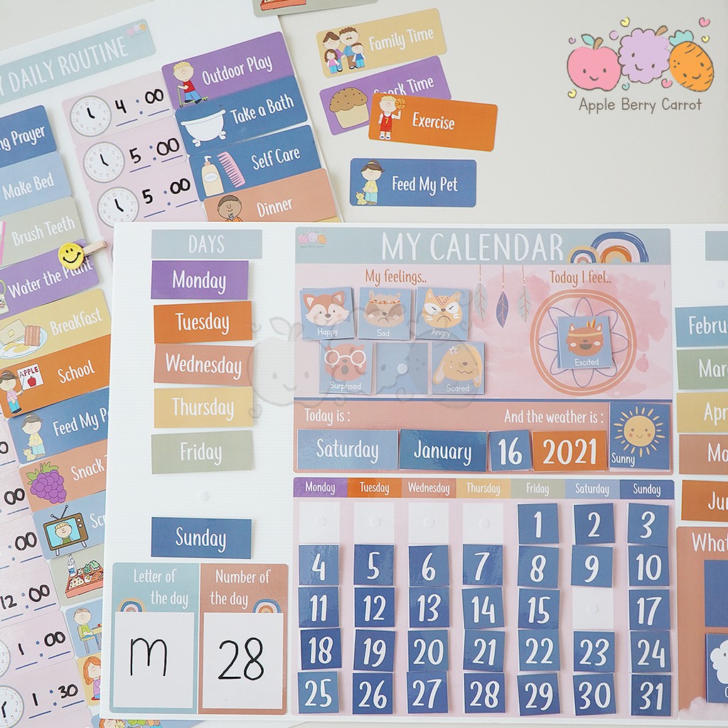 • All cards for calendar (months, day, weather, feelings, etc)
