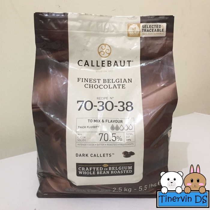 - Cokelat kancing(callets) jenis dark chocolate dari brand cokelat Belgia ternama Callebaut.