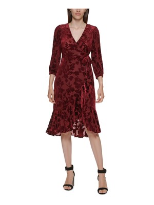 CALVIN KLEIN Женское красное платье с частичной подкладкой и завязками на талии с рукавом 3/4, Красный