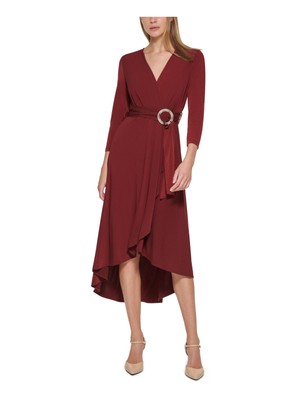 CALVIN KLEIN Женское плиссированное платье миди с запахом и рукавами 3/4, Maroon