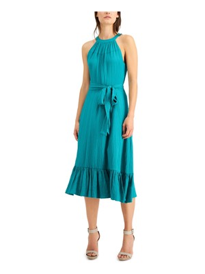 CALVIN KLEIN Женское темно-бирюзовое платье миди без рукавов с поясом и оборками по краю, Teal