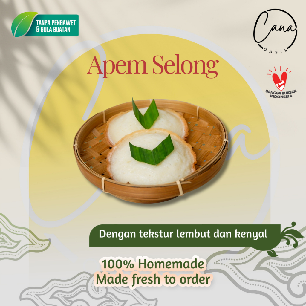 Apem selong homemade, dibuat dari bahan-bahan berkualitas: tepung beras pilihan, santan segar, dan gula merah asli.