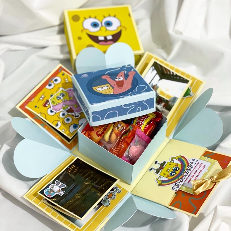 Custom theme exploding box bisa taruh permen di tengahnya