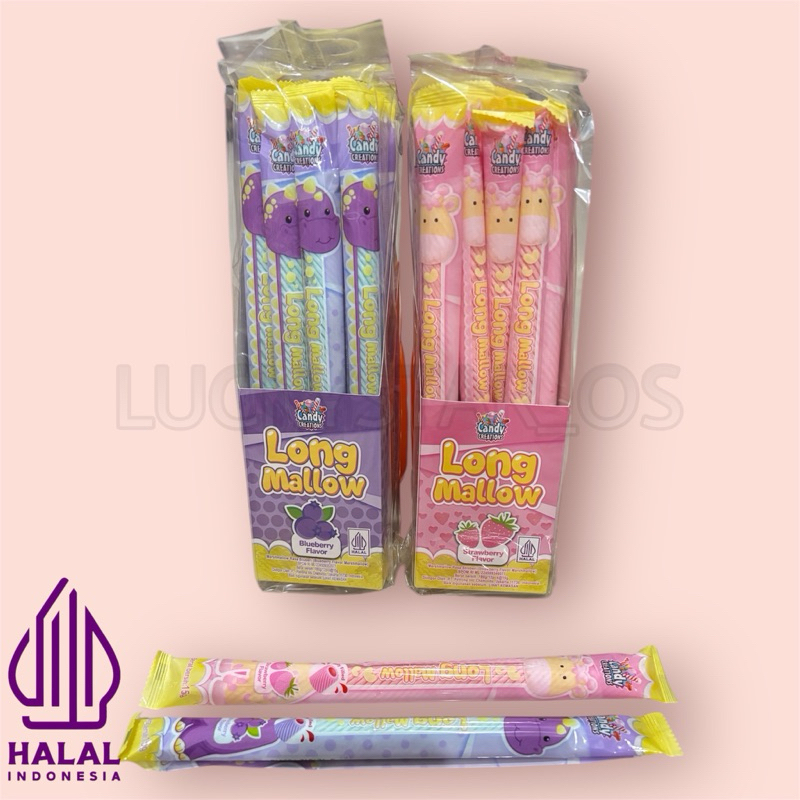 CANDY CREATIONS LONG MALLOW MARSHMALLOW RASA STRAWBERRY / BLUEBERRY ISI 12PCS