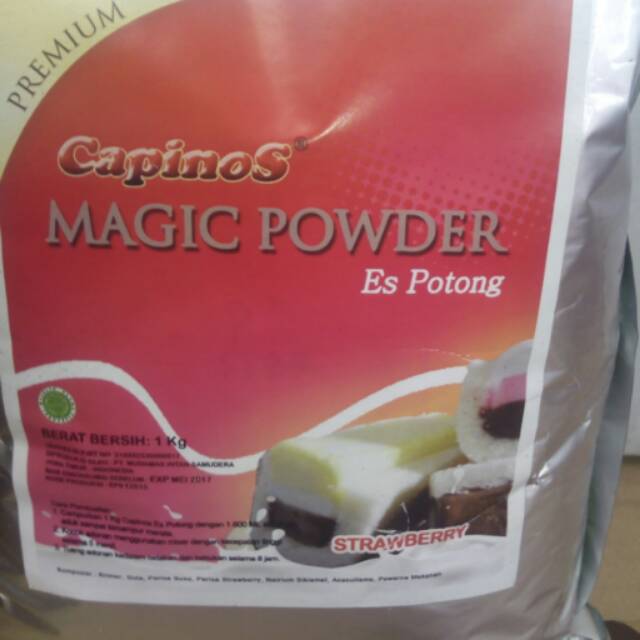 Jual bahan es cream mix berupa tepung/ powder Capinos magic powder (es potong ) rasa strawberry