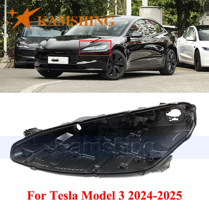 CAPQX Front Headlight Base Cover For Tesla Model 3 2024-2025 Head Lamp Rear Shell Head Light Back Lid