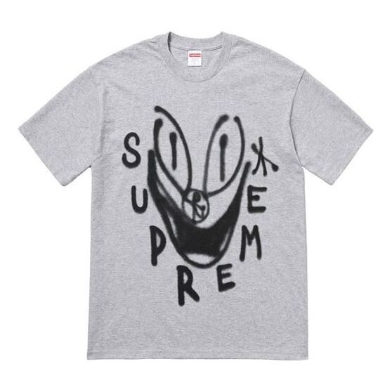 Футболка fw18 smile tee heather grey graffiti smiling face printing short sleeve gray Supreme, серый