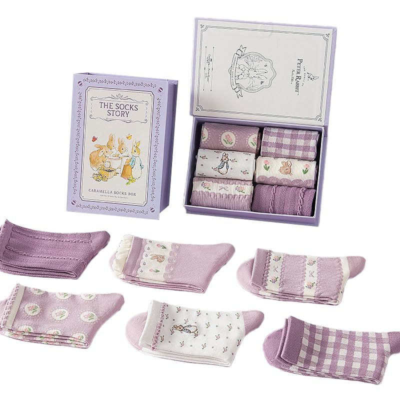 CARAMELLA Питер Кролик Подарок Caramella Peter Милый Питер Кролик J Носки, Набор из 6 пар, Осень/Зима, Носки, Кролик, Женские, Подарок, Взрослый, День рождения, розовый