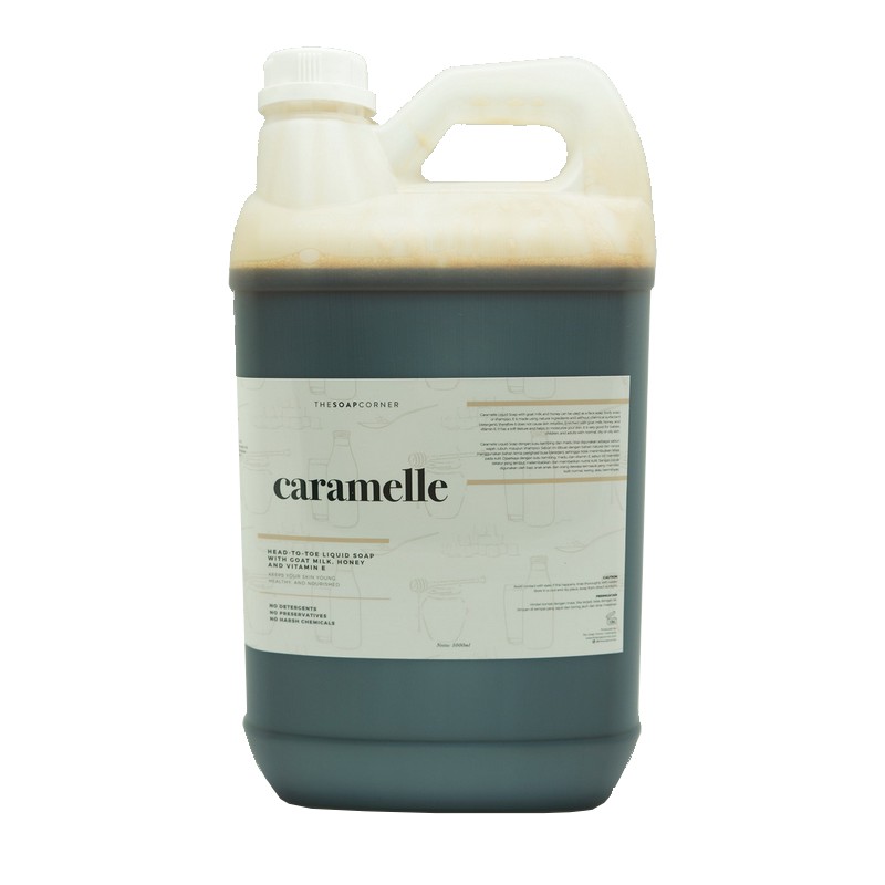 Caramelle (Head to Toe) Liquid Soap diperkaya dengan Susu Kambing, Madu Organik dan Vitamin E. Semua yang dibutuhkan dari rambut hingga kakimu dalam 1 botol.