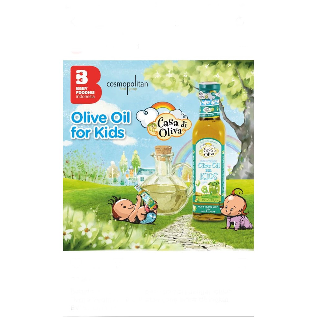 Casa di Oliva Olive Oil merupakan minyak Zaitun Organik berkualitas yang berasal dari buah zaitun organik pilihan. Sangat penting untuk dikonsumsi bayi atau anak-anak. Berfungsi sebagai pelembab alami kulit dan rambut anak, serta berperan sebagai jus alami untuk diet menjaga keseimbangan pertumbuhan anak. Memiliki kandungan vitamin A, vitamin D, vitamin K, dan vitamin E. Kaya akan Oleic Acid (lemak tak jenuh tunggal) yang berperan penting dalam menjaga keseimbangan kolesterol tubuh anak, Omega 3, Omega 6, Omega 9, Squalene, dan Anti Oxidant.