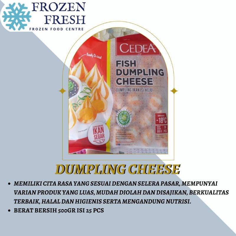 CEDEA Fish Dumpling Cheese [500g], merupakan makanan instan yang terbuat dari ikan olahan pilihan dan diproses secara higienis HALAL dari MUI dan diproduksi berdasarkan standar BPOM RI, Terbuat dari Ikan Olahan Berkualitas ini dapat disajikan dengan berbagai menu makanan lainnya.