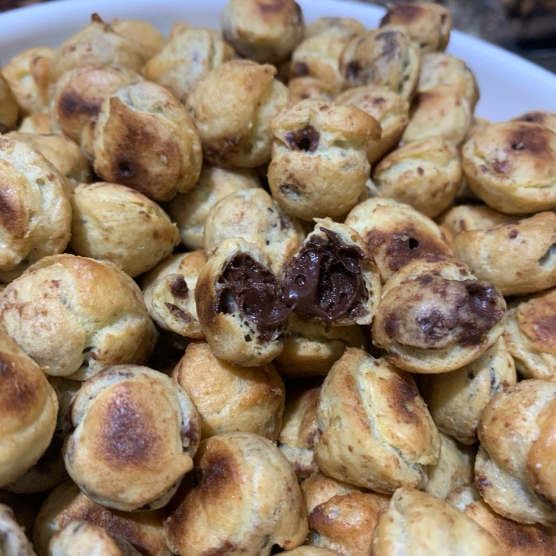 Cemilan soes cokelat rasa cokelat lumer manis dan renyah
