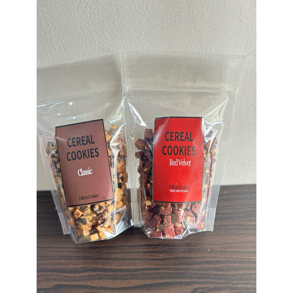 Cereal cookies adalah cara baru untuk menikmati cookies dengan potongan kecil sehingga mudah untuk dinikmati. Cereal cookies dengan rasa coklat dan bertekstur renyah dapat di nikmati langsung atau disantap dengan susu dingin. Di jamin ketagihan!!!