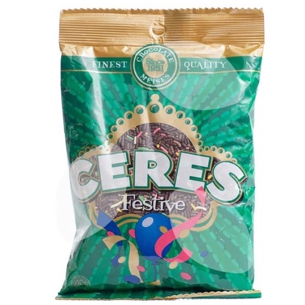 Ceres Hagelslag Festive [90 g] merupakan meses dengan rasa chocolate. Bisa untuk taburan roti tawar, hiasan cake
