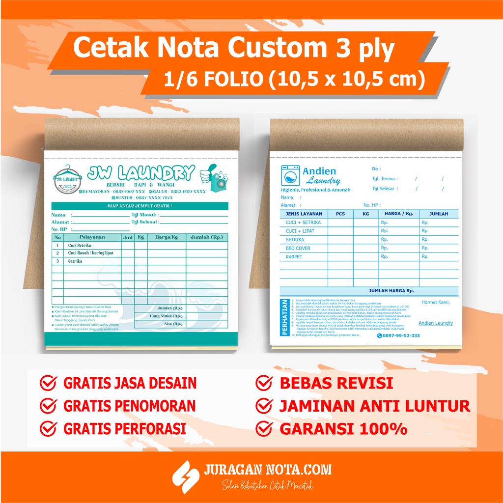 CETAK NOTA CUSTOM 3 PLY / 3 RANGKAP 1/6 FOLIO ( BEBAS DESAIN )