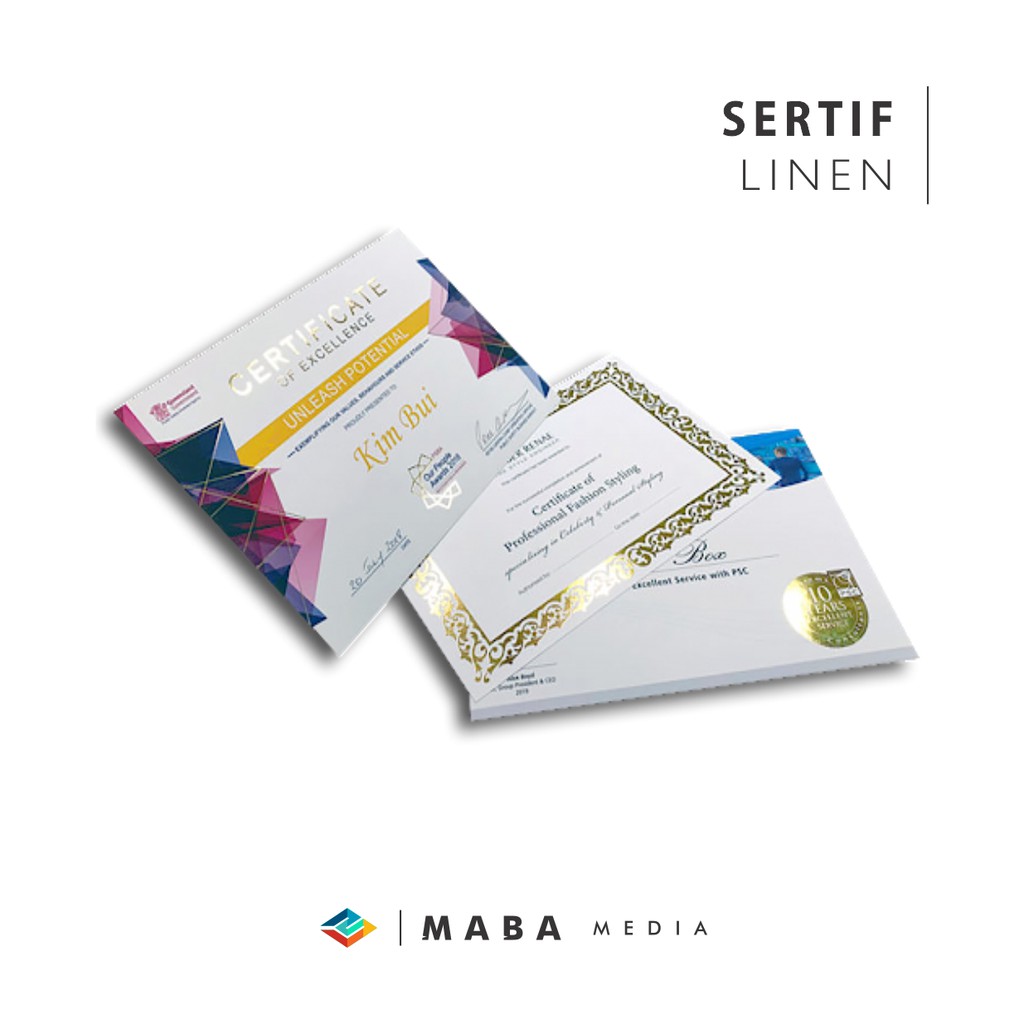 MENGGUNAKAN KERTAS LINEN DENGAN TINTA PRINT YANG SANGAT AWET DAN BAIK.