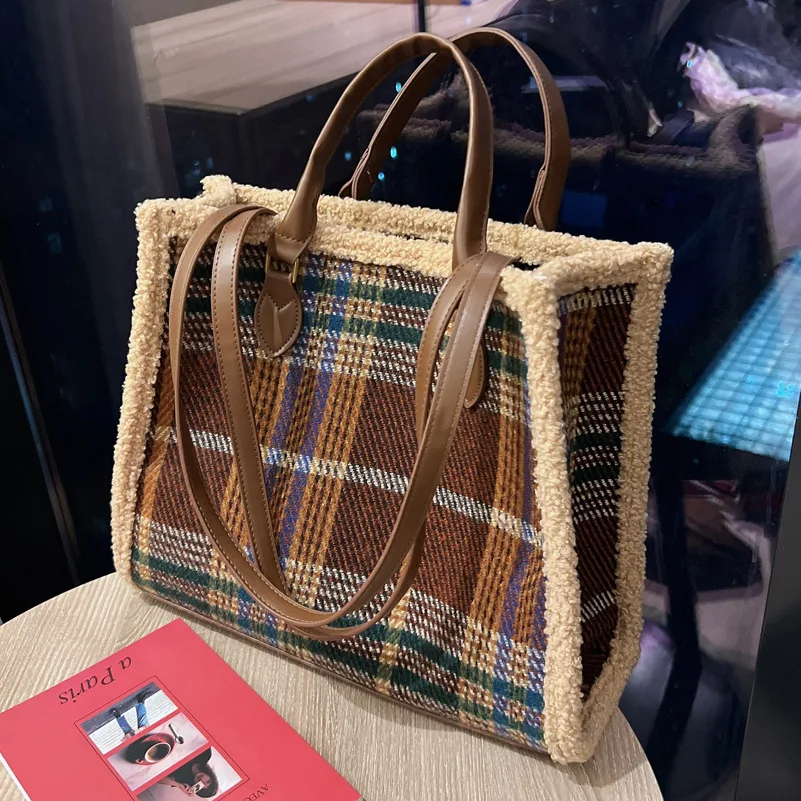 CGCBAG, Женская Ретро сумка-тоут из овечьей шерсти, 2022, модная вместительная сумка на плечо, Женская роскошная дизайнерская сумка, Женская Холщ...