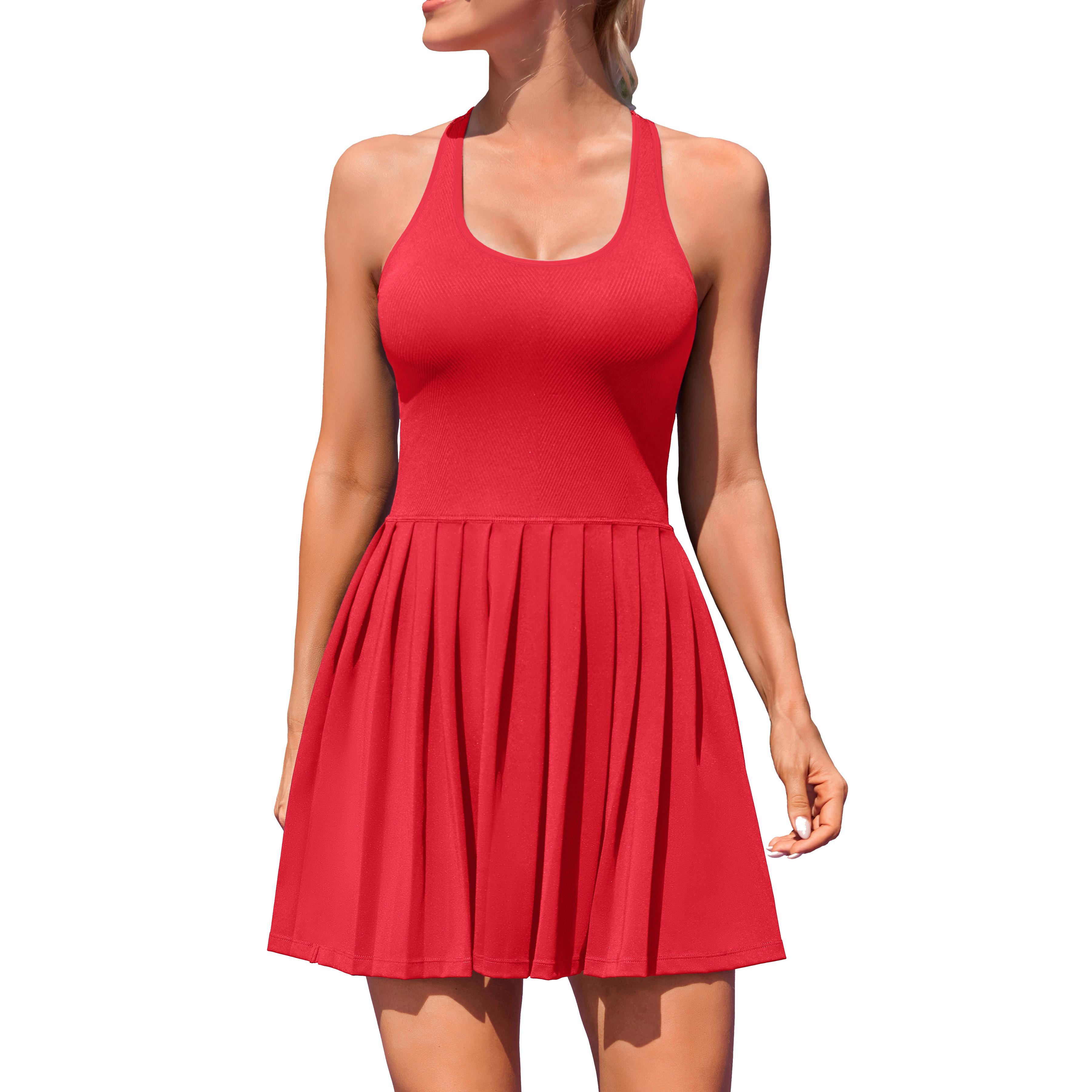 CHARMLEAKS Женское теннисное платье со встроенными шортами и бюстгальтером, плиссированное платье для гольфа, бесшовное спортивное платье M красный