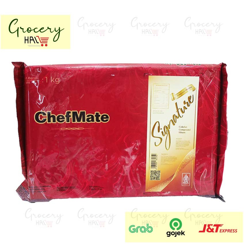 Chefmate signature dark chocolate compound / cokelat compound premium chefmate. Signature Dark Chocolate Compound Chefmate memiliki tekstur dan rasa cokelat yang menyerupai chocolate couverture, namun pengaplikasiannya mudah seperti menggunakan cokelat compound. Cokelat compound ini dapat dilelehkan untuk untuk digunakan sebagai bahan tambahan untuk pembuatan kue/ roti/ cookies / dan dessert lainnya.