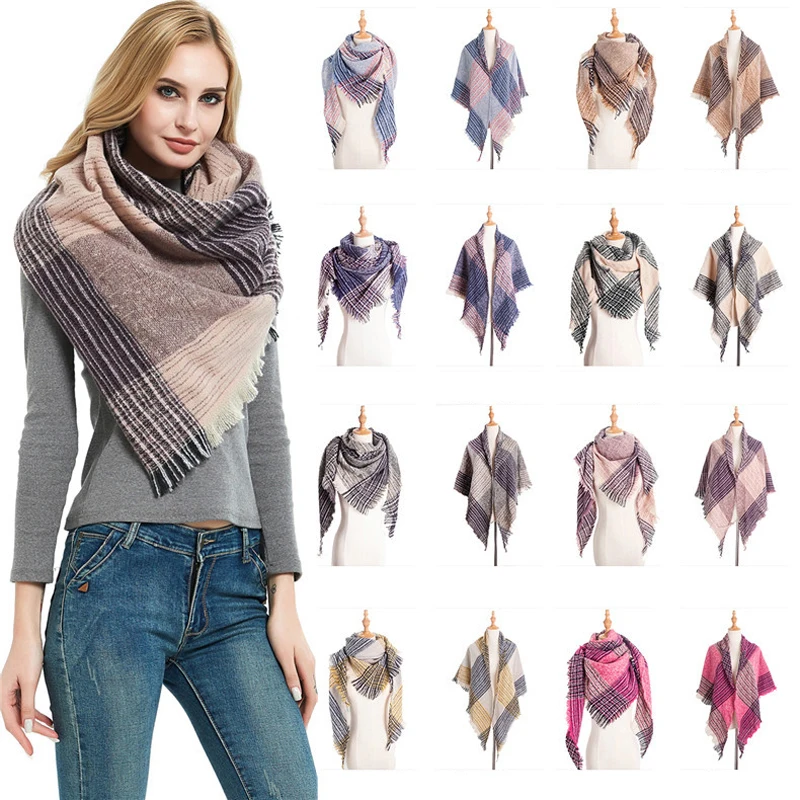 CHENKIO Женский Теплый Шарф Треугольные шали зимние шарфы полосатый клетчатый плотный квадратный шарф женский шарф роскошный шарф женский зим...