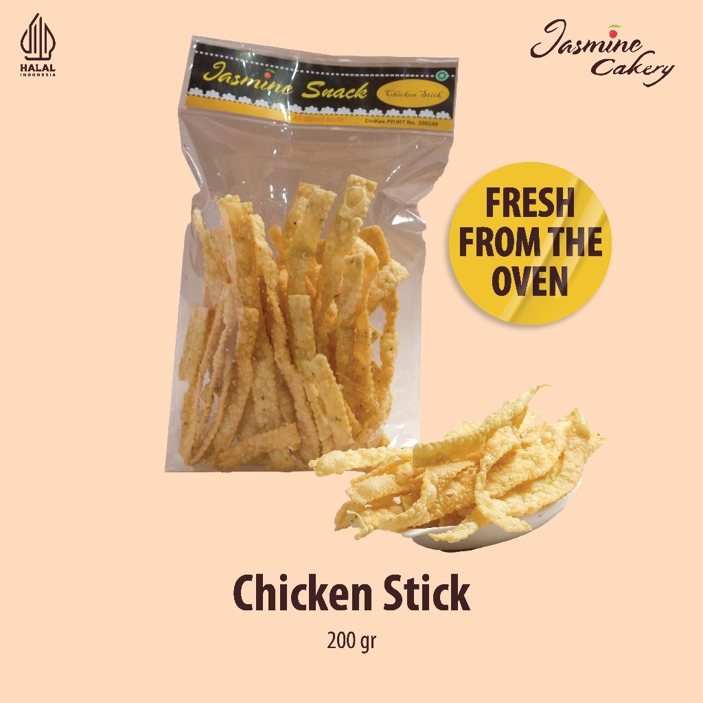 Chiken Stick adalah camilan khas yang cocok menenami kita semua dalam berbagai kesempatan. Chiken Stick memiliki bentuk yang ramping dengan tekstur yang renyah dan memiliki rasa gurih khas keju sehingga dapat dinikmati oleh semua kalangan usia