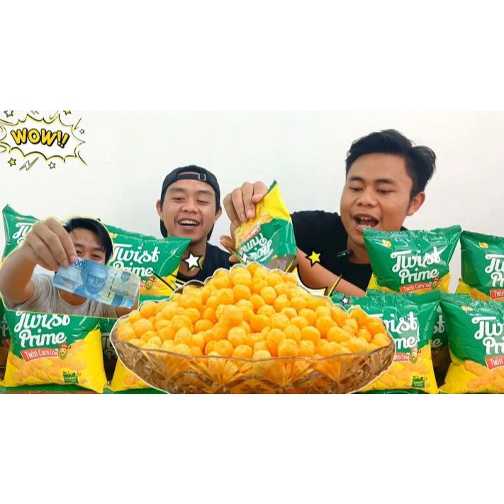 Chiki yang bentuknya twist corn rasa keju crispy berhadiah uang bila beruntung.
