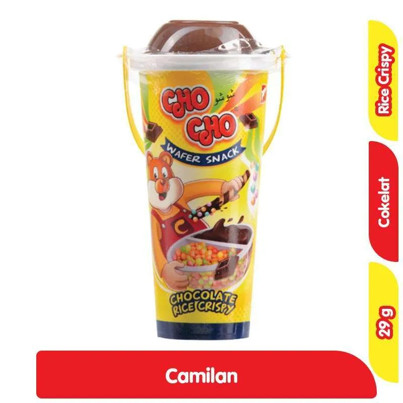 CHO-CHO Wafer Snack Chocolate Rice Crispy Cup 33g adalah camilan berupa wafer cokelat dengan taburan rice crispy yang renyah dan berisi krim cokelat premium. Wafer ini memiliki bentuk yang unik dan lezat, serta terbuat dari bahan-bahan berkualitas sesuai standar makanan.