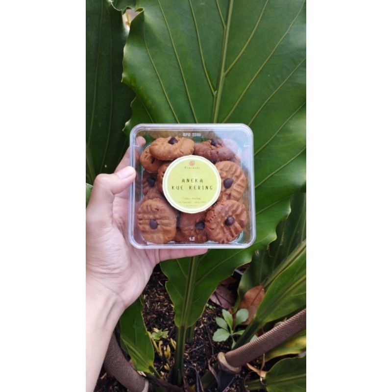 Kue Kering Choco Cookies menggunakan packaging dalam bentuk toples persegi