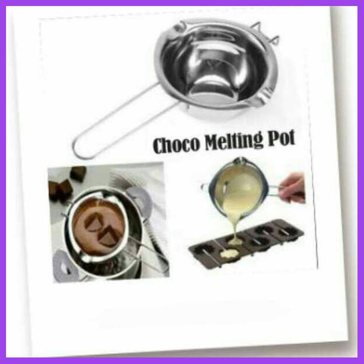 Pot untuk mempermudah melelehkan Cokelat, diletakkan diatas panci tanpa takut cokelatnya terkena air karena mempunyai kaitan dipinggirnya.