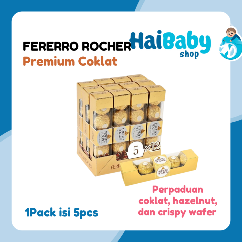 Ferrero Rocher Isi 5 Pcs Cokelat Dengan Kacang Hazel
