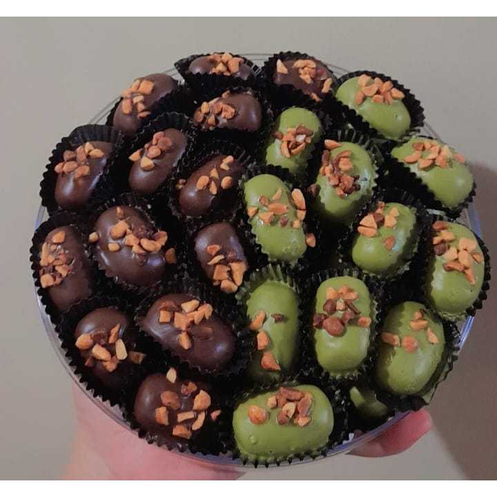 Butter Cookies yang dilapisi dengan coklat / matcha pasta dengan taburan kacang cincang