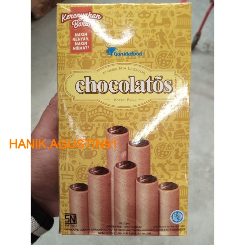 Chocolatos merupakan inovasi baru dari Gery Wafer Stik dengan menghadirkan wafer stik yang lebih besar dan isi krim coklat yang lebih padat. Perpaduan antara wafer stik dan krim coklatnya memberikan citarasa serta kepuasan tersendiri dalam menikmati wafer stik, yang tidak dapat kita temui pada produk-produk wafer stik pada umumnya. Kombinasi wafer stik dan coklatnya merupakan perpaduan selera dan kualitas prima. Gery Chocolatos, mama mia lezatos