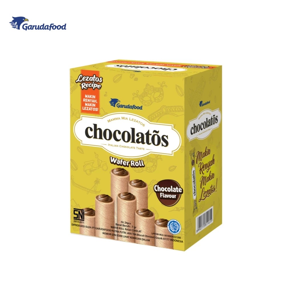 Chocolatos merupakan inovasi baru dari Gery Wafer Stik dengan menghadirkan wafer stik yang lebih besar dan isi krim coklat yang lebih padat. Perpaduan antara wafer stik dan krim coklatnya memberikan citarasa serta kepuasan tersendiri dalam menikmati wafer stik, yang tidak dapat kita temui pada produk-produk wafer stik pada umumnya. Kombinasi wafer stik dan coklatnya merupakan perpaduan selera dan kualitas prima. Gery Chocolatos, mama mia lezatos