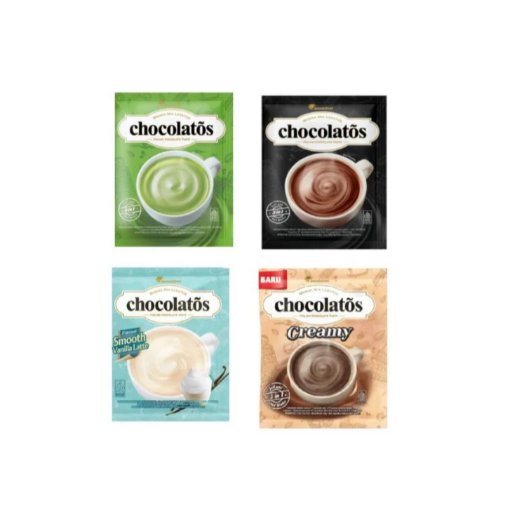 Chocolatos mengeluarkan satu varian produk berupa minuman serbuk coklat yg di jual dgn kemasan sachet. Di produksi oleh PT. Fairpack Indonesia - Bekasi, dgn lisensi PT. Garudafood Putra Putri Jaya - Gresik. Chocolate drink yg kental dan Enak, murah meriah, praktis, dan beratribut lengkap dgn BPOM RI dan Halal Indonesia. Penyajian panas, dingin sama nikmatnya. Dijual dalam paket 5 sachet. Silahkan dicoba.