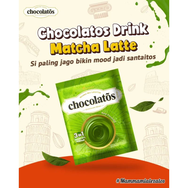 chocolatos matcha late drink 1 renceng isi 10 sachet dengan berat per kemasan 28 gr