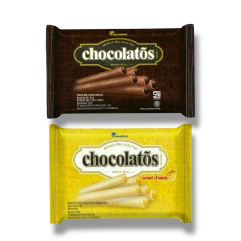 Chocolatos Mini Wafer Roll adalah wafer roll berbentuk stick ini memiliki tekstur renyah dengan isian krim cokelat yang padat rasa khas cokelat Italia.