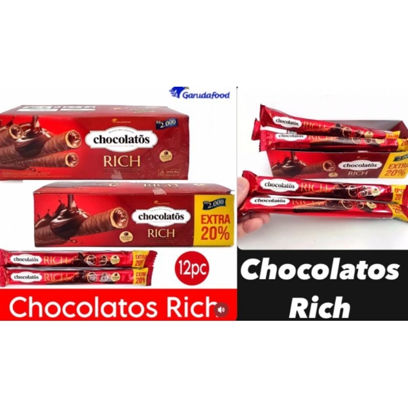 Nikmati momen istimewa dengan Chocolatos Rich, wafer stick premium yang diisi dengan krim cokelat mewah. Dibuat dengan bahan-bahan berkualitas, setiap gigitan Chocolatos Rich memberikan perpaduan sempurna antara wafer yang renyah dan cokelat yang lembut dan kaya rasa. Cocok untuk dinikmati kapan saja, baik saat bersantai sendiri, berkumpul bersama teman, atau sebagai pelengkap saat menyeruput kopi atau teh favorit Anda.