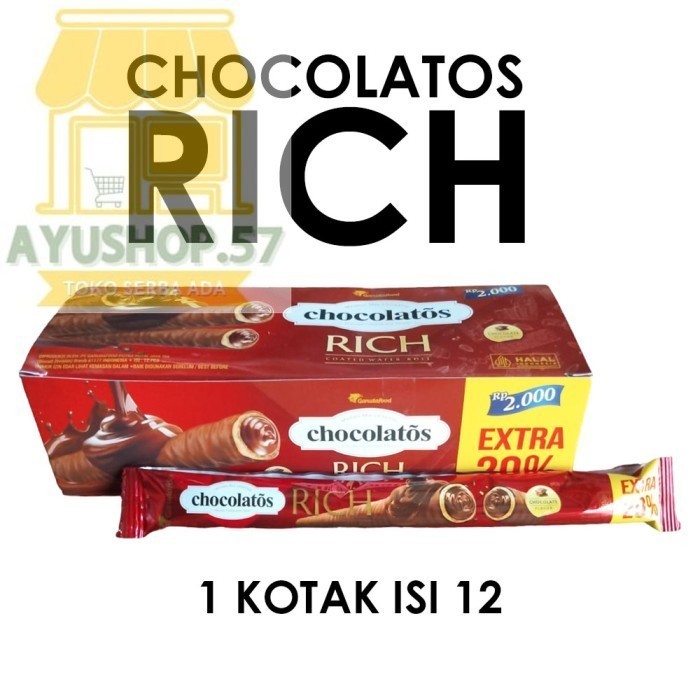 CHOCOLATOS RICH WAFER ROLL COATED KOTAK ISI 12 - AYUSHOP57